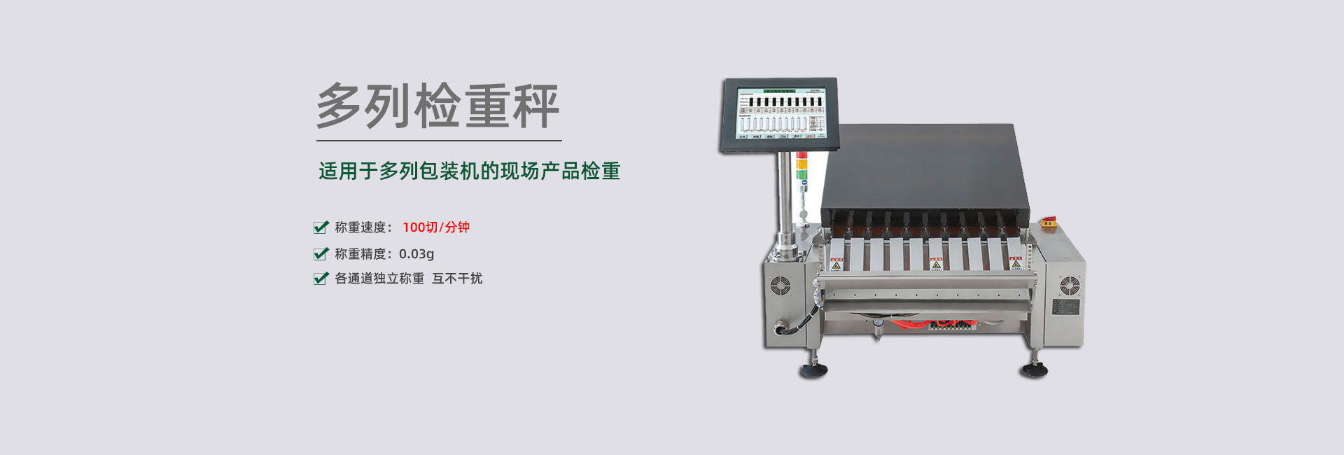 擁有各種剔除方案的專利,包括多列稱重結構的剔除裝置,可杜絕不合格品誤通過,準確剔除各種高速、超薄、片狀、易碎,軟包、空包等物品,包括多列高速產品。